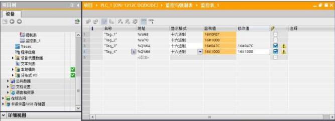 十三、調試:TIA 軟件提供在線調試功能,可以現場操作變頻器,檢查配置和接線是否正確。 在在線模式下,在監控表中添加‘%IW68(STW)’、 ‘%IW70(MAV)’、 ‘%QW64(CTW)’、 ‘%QW66(MRV)’、如圖十四所示:
