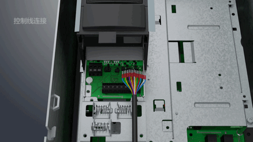 2、將數據線兩端分別連接變頻器及柜門上面板后的數據線接口
