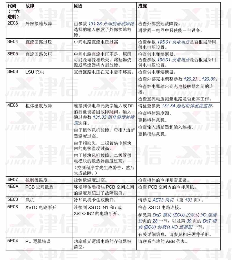 ABB ACS880在使用過程中,如果出現故障,可以在面板上查詢故障代碼,并根據相應故障代碼分析故障原因和采取維修措施進行修復。常見故障代碼如下: