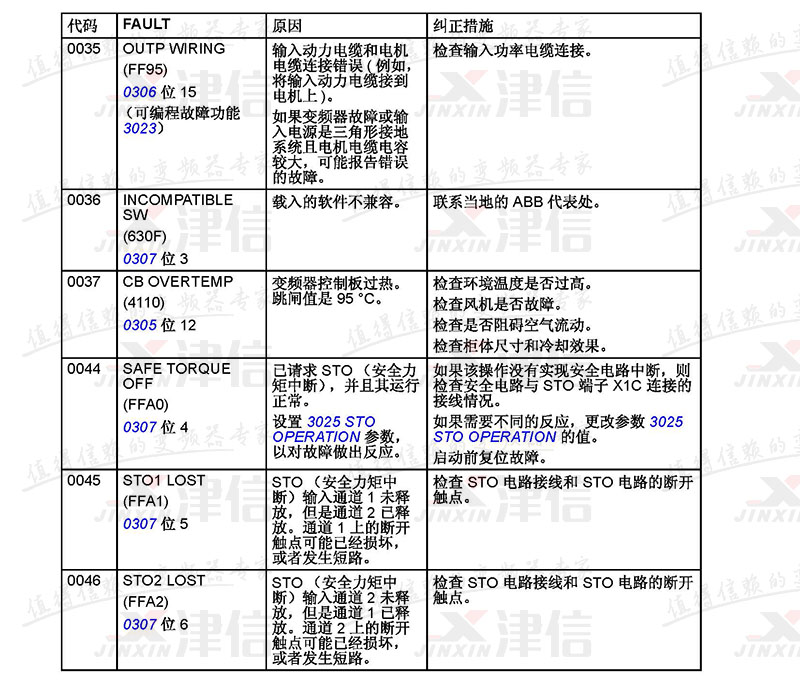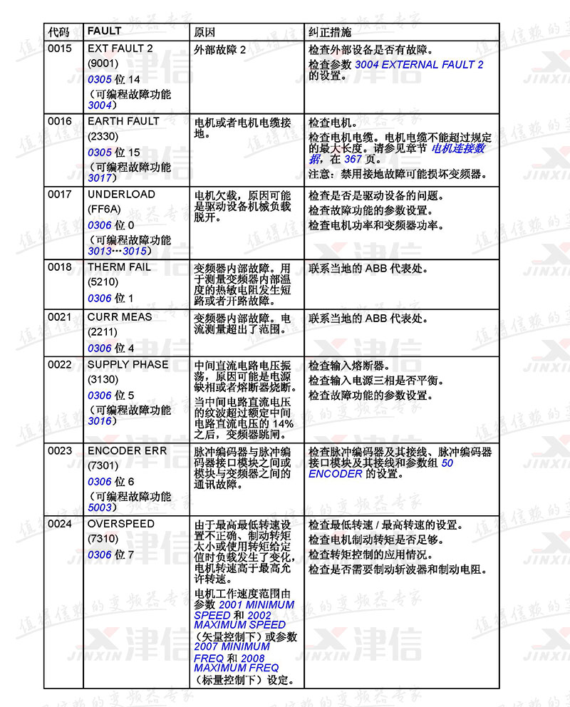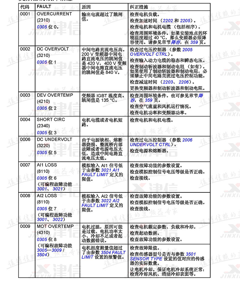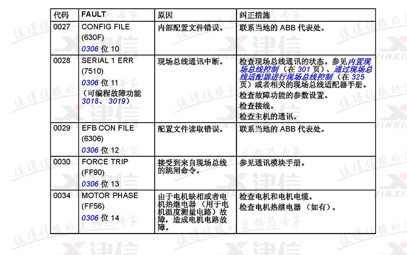 當故障發生時,可以通過ABB ACS355變頻器面板了解當前故障的故障代碼,并針對相關故障代碼來進行故障排查和維護。