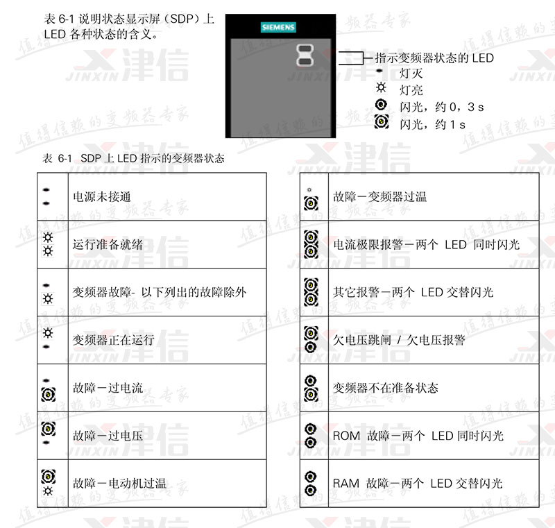 故障值: 1.有些功率部件的測試有故障 2.有些控制板的測試有故障 4.有些功能測試有故障 8.有些 I/O 模塊的測試有故障。(僅指 MM 420) 16.上電檢測時內部 RAM 有故障 |