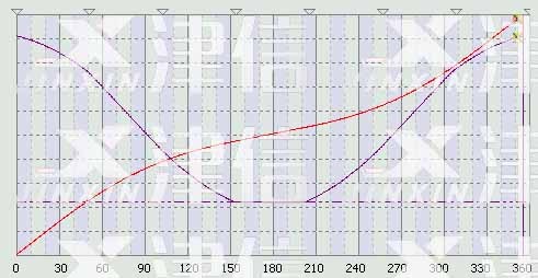 圖2凸輪曲線(xiàn)——紫色線(xiàn)為速度,紅色線(xiàn)為位置